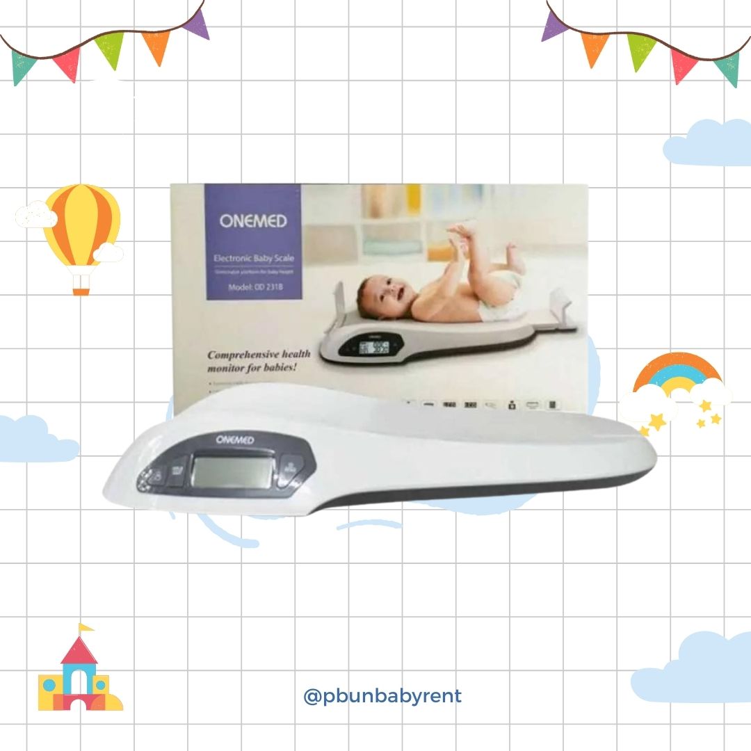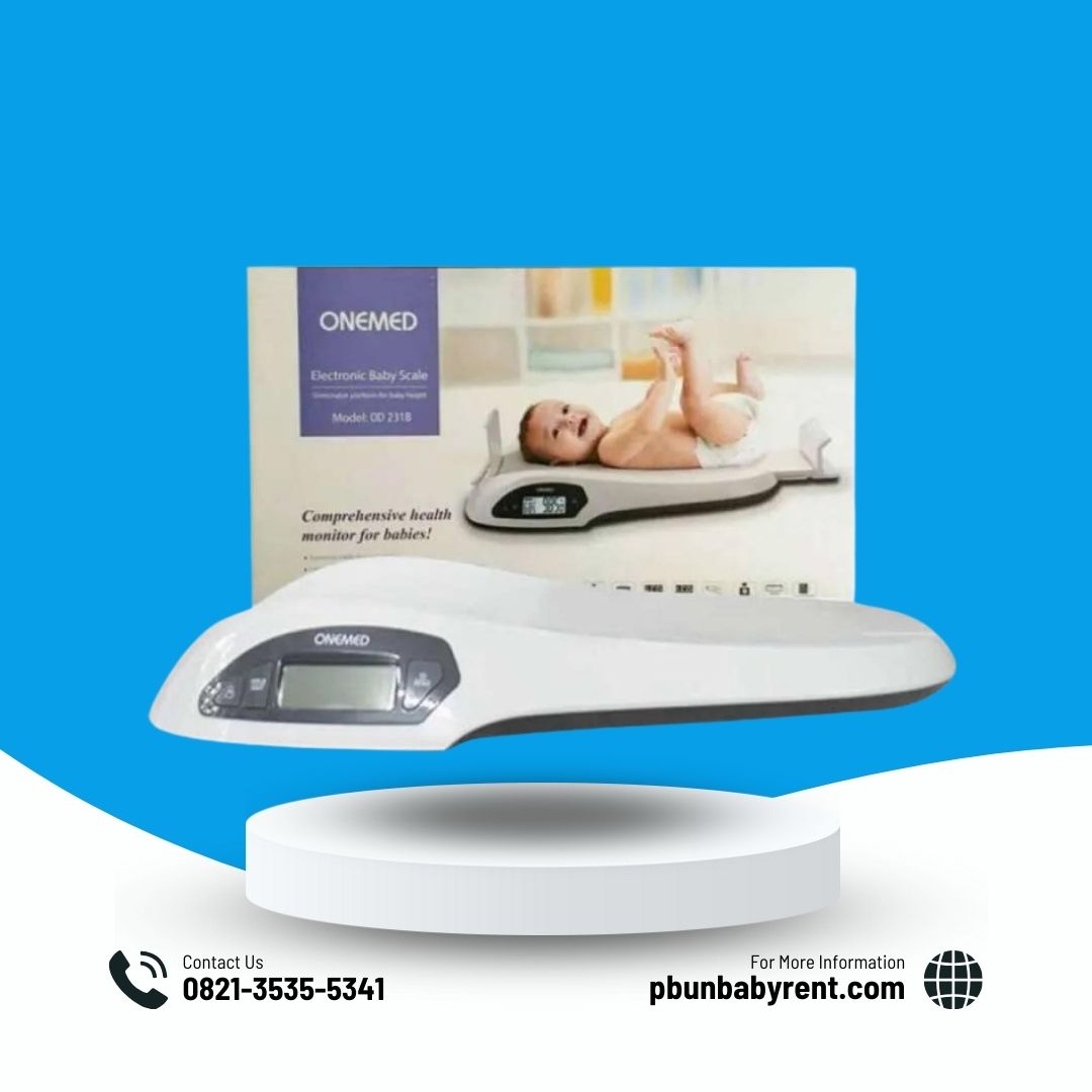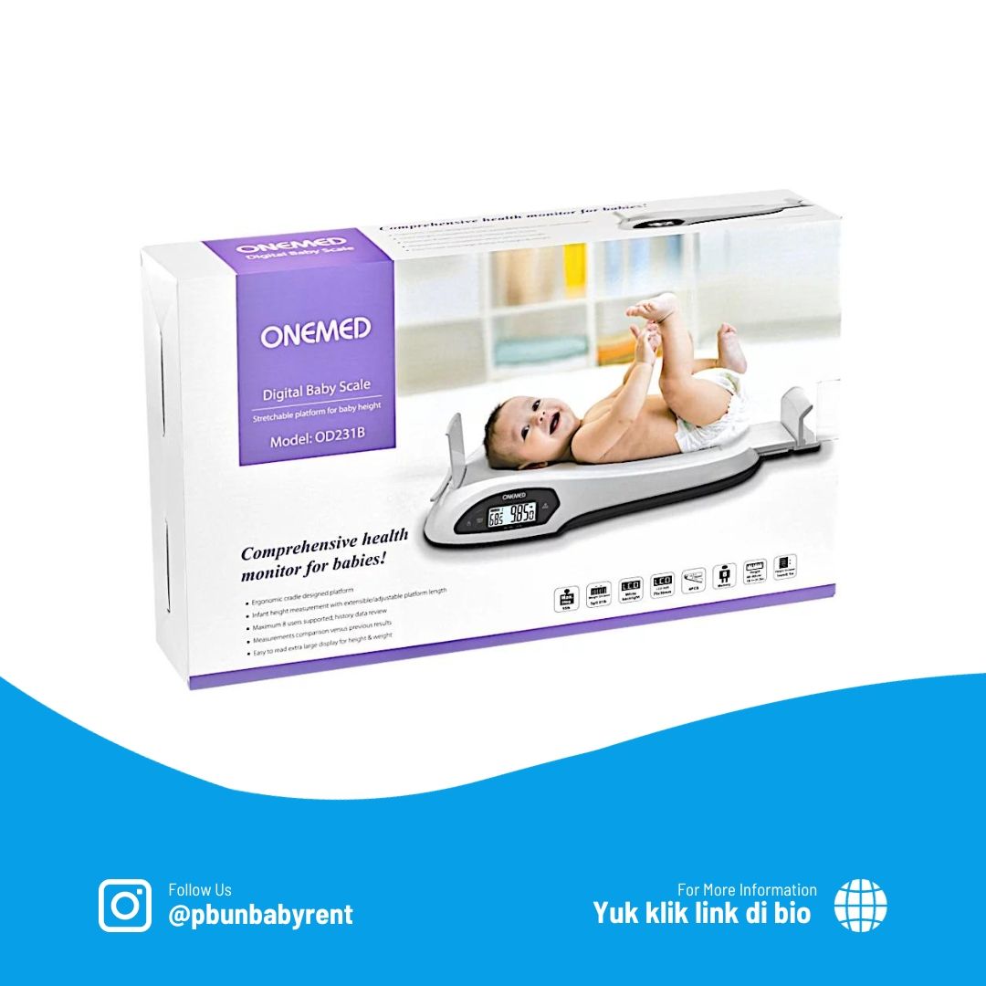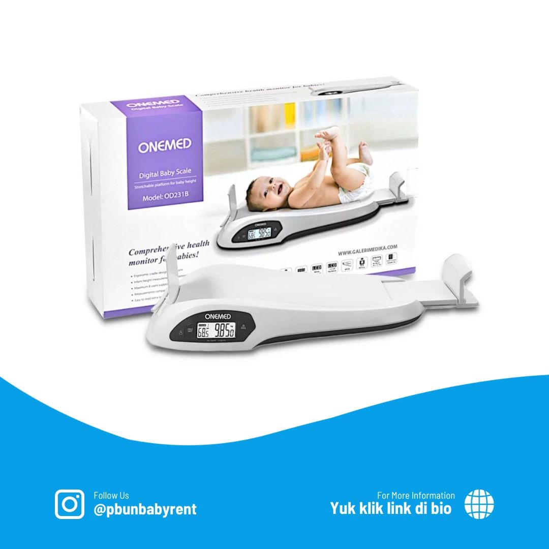 Timbangan bayi digital OneMed OD 231B memantau kesehatan bayi secara lengkap, mengukur berat & panjang badan bayi sekaligus.