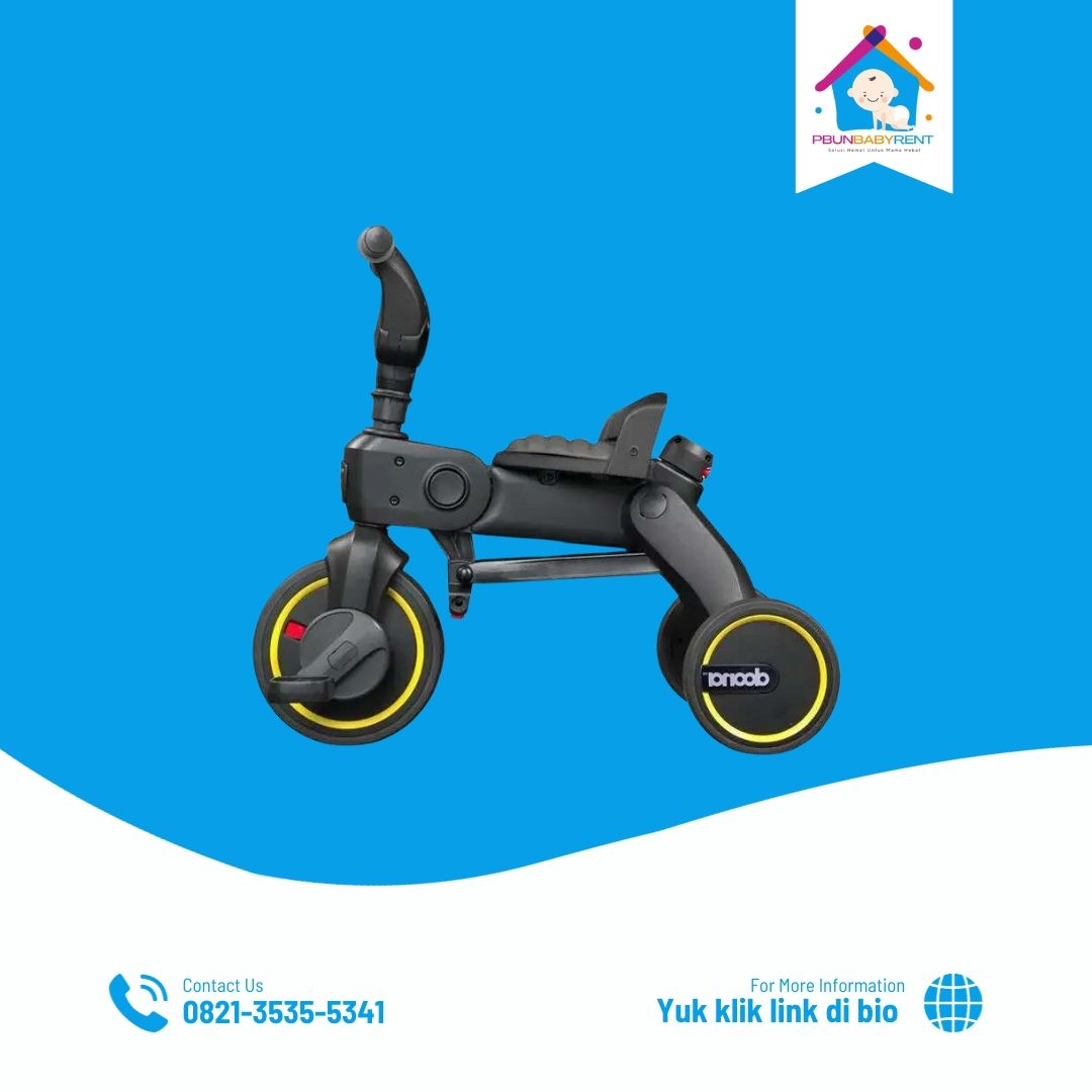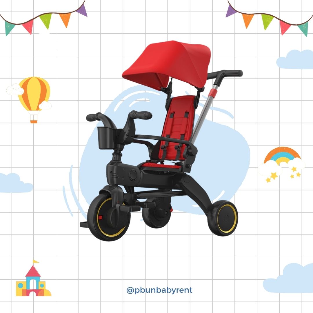 Tahap 3 (mode Roda Tiga): 24-30 bulan – Sandaran Berbaring multi-posisi, kontrol handle bar, Pedal.